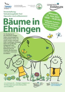 Unter dem Motto „Bäume in Ehningen“ bietet die Beteiligungsgruppe Aufenthaltsqualität und Grünflächen in Ehningen am 21.06.2023 von 18:00 bis 19:30 Uhr eine Führung für Jung und Alt. Treffpunkt ist der Parkplatz des Waldkindergartens Ehningen.
