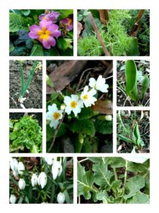 Ungewöhnlich viel Sonnenschein im Februar und in dieser Woche endlich auch Niederschläge: Kein Wunder, daß im Gemeinschaftsgarten das Kraut allenthalben aus dem Unterholz schiesst! Wir finden jetzt schon eine ansehnliche Mischung aus Pionieren im Garten: Zwiebeln, Primeln, Fenchel, Narzissen, Salat, Schneeglöckchen, Löwenzahn, Vogelmiere, Ehrenpreis, Feldsalat und vieles mehr.